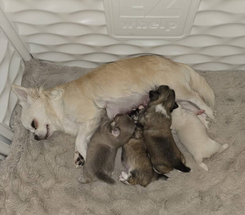 Die Geburt verlief problemlos, und alle Welpen sind wohlauf.